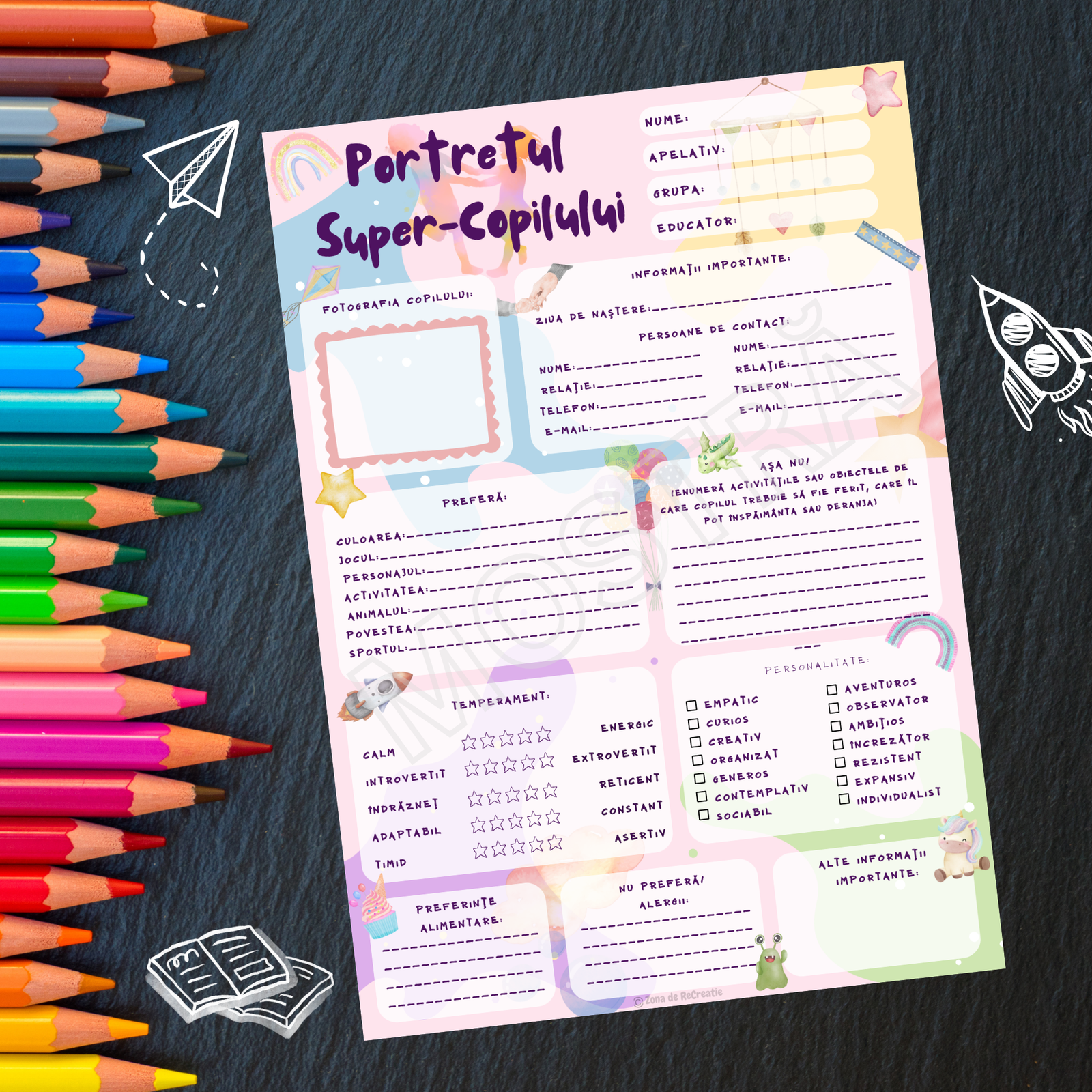 Completează împreună cu copiii la începutul anului școlar, transformând activitatea într-un joc interactiv care îi face să se simtă speciali și ascultați.